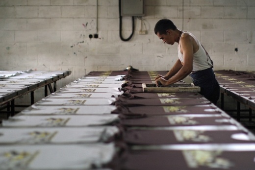 服裝廠的T恤衫。 (迪馬斯阿爾迪安/彭博)#