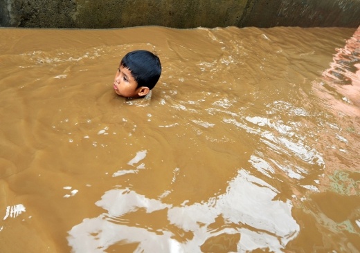 在稻田玩足的球男孩。 (路透社/ Beawiharta)#