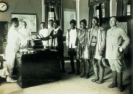 塔瑪荷社頭目晉見高雄州知事呈獻鹿角