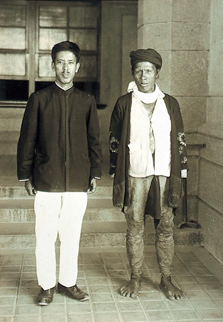 攝於西元1933年(昭和8年),為塔瑪荷社頭目拉荷˙阿雷與日本督學二本森的合影留念。