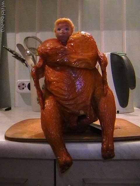 小編之前有看過芭比娃娃結合蛋糕...但沒看過也可以結合烤雞的