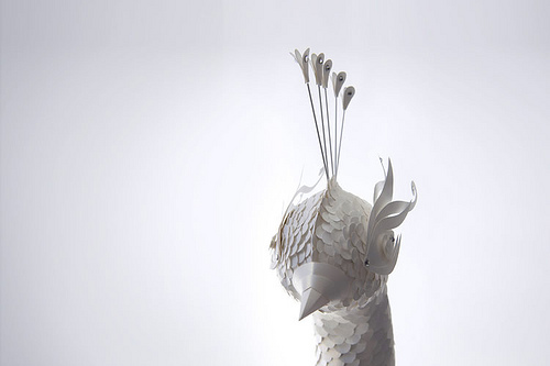 這隻美麗雪白的孔雀散發優雅韻味,她來自於 The Makerie Studio,而創作者是兩位倫敦紙雕藝術家Julie Wilkinson and Joyanne Horscroft,