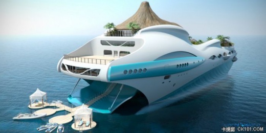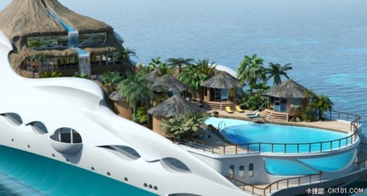 簡直就是天堂般的景觀。船上還有直升機停機坪以及小港口 ……