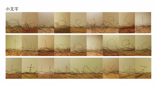 Kanazawa藉由操弄、彎曲來將這些腿毛設計成大、小寫的商用英文字母。