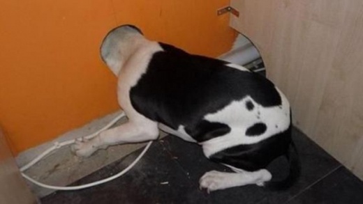 這兩隻狗狗的頭不知道怎麼鑽進去的