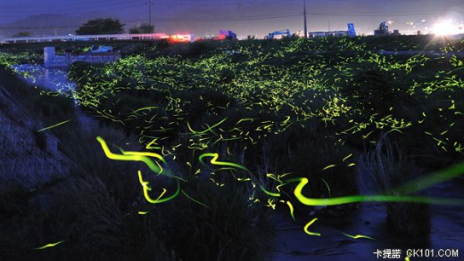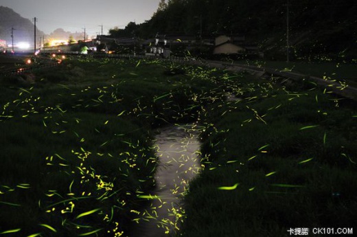 日本攝影師拍攝到許多螢火蟲的照片,但因為螢火蟲飛行的速度相當緩慢,所以使用了長時間曝光的拍攝手法,才有辦法拍出飛行的軌跡和繁星點點的效果。他們選在六月,七月的雨季後,潮濕的空氣是螢火蟲最喜歡的環境,拍出來的效果光只是看照片就讓人淚眼婆娑了,霓虹燈似的黃色綠色點點交錯,形成了相當漂亮且富麗堂皇的畫面。