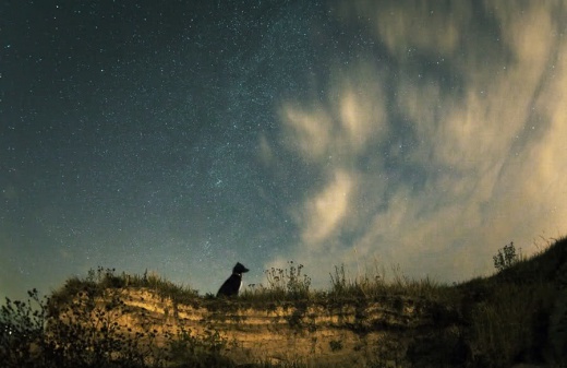 狗和璀璨的星空,我現在很開心,因爲昨天剛好是它陪我走過的第6個年頭,它安靜的坐在那裏,望著這寂靜的夜晚。