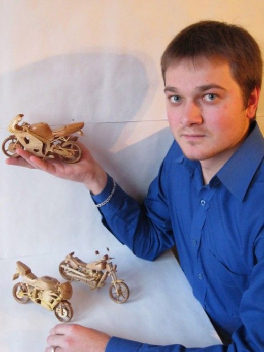 網友們有看過非常精巧的原木機車模型嗎?