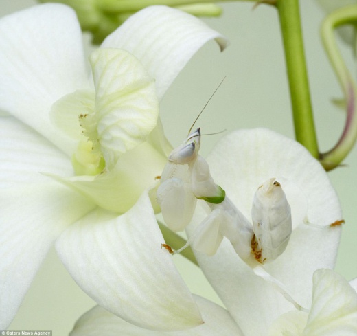 That's a blooming good disguise: An Orchid Mantis sits inside a flower