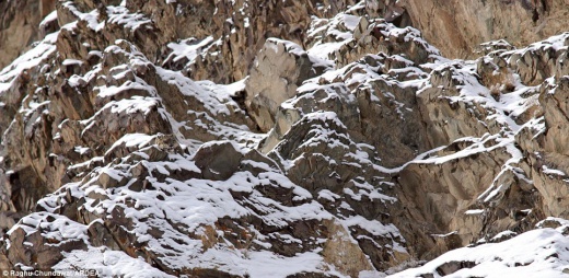 Can you spot me? A snow leopard looks for prey in the Himalayas
