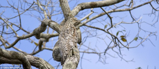 Where did he go? The Great Potoo hides in a tree in Brazil as it searches for food
