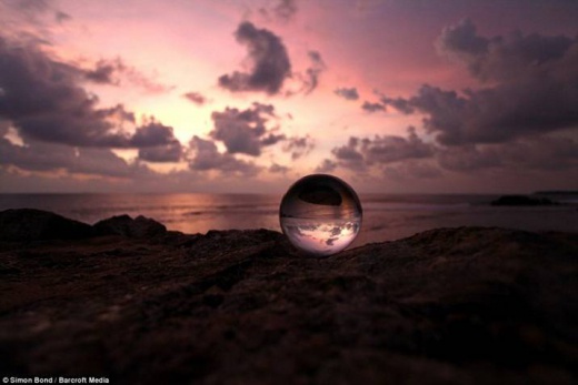 這張照片顯示,邦德的韓國朋友法蒂瑪微笑著坐在球中,顯得很小。邦德表示:「不久前,我俯瞰一座小鎮的盛滿水的玻璃酒杯上看到了一幅折射的畫面,它深深吸引了我的眼球。為此,我寫了一本書,希望可以幫助那些希望相機更有創意的人。這本書叫《簡單景色,絕妙拍攝》。」
