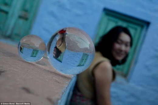 玻璃球將印度藍色城市焦特布爾和攝影師邦德的妻子完美結合在一起。