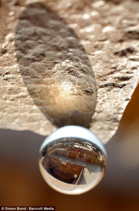 印度齋沙默爾市要塞在玻璃球中清晰可見。這些與眾不同的照片是英國漢普郡曼徹斯特市攝影師西蒙-邦德的作品。正在亞洲旅行的他,通過玻璃球觀看倒轉的景象。