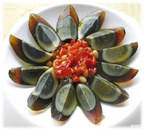 皮蛋:在洋人眼中,這是放了百年的爛蛋(Century egg)。