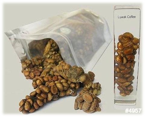 麝香貓咖啡:產於印尼,從麝香貓大便中取出的咖啡豆。