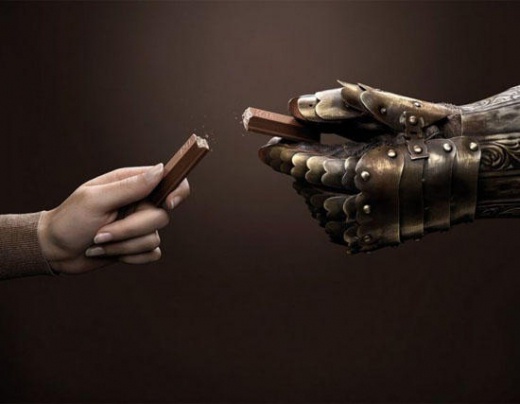 這兩張攝影作品非常容易理解,就是巧克力好吃到木乃伊願意和印第安那瓊斯分享,魔戒裡的戒魔願意和精靈公主分享…