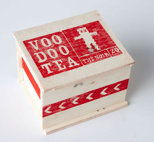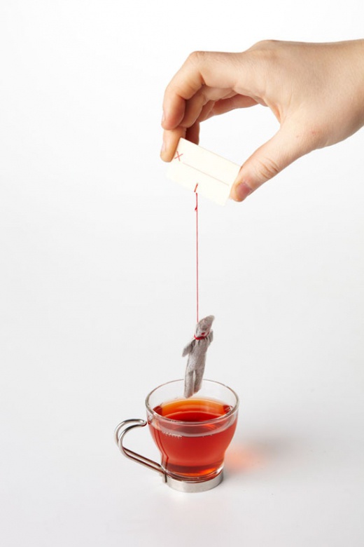 設計師「 Anne Marie」就發想了一款迷信又兼具黑色幽默的巫毒小人茶包,拿起茶包的標籤紙會發現線頭是綁在小人的脖子上(驚!),小人的表情痛苦到眼睛變成兩個叉 叉,姑且不論喝起來如何,如果在自己的工作環境中有個常常愛捅你的小人,喝這款茶不僅有助身心放鬆之外也意外的爽快阿!