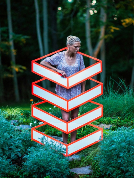 幾何圖形看似簡單,但卻需要對空間感有足夠概念才能發揮得夠漂亮,例如物體透視感、線條比例、前後視差等,搭配周遭環境來創作,將平面化作虛幻的立體,完全騙過大家的眼睛!
