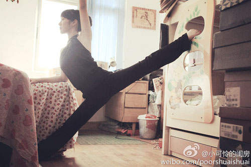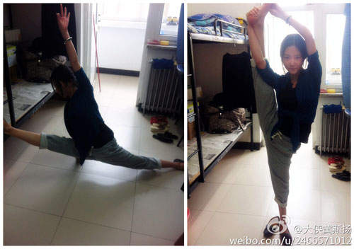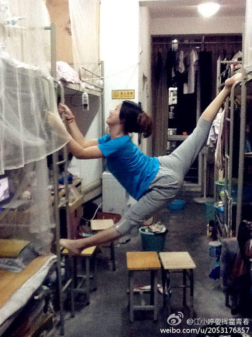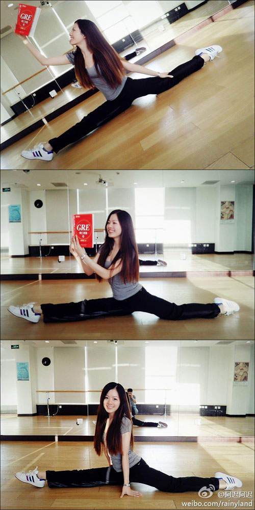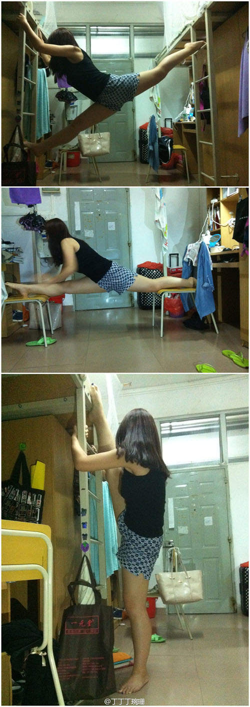 當然~這種後仰姿就已經算是高難度的動作了...不過在一次偶然間,一字馬的動作就突然成為了大家爭相模仿拍攝上傳的一種動作~其實起初是由一位山東大學藝術學院的大三學生所拍攝的,原本她只是很簡單地發了一張照片上傳網路,沒想到因為體態太過於優美...於是被大量的轉發,原本還有人想神妹的,但最後竟然演變成了大家爭相模仿上傳的一股風 氣...從此,網路上就出現了許多一字馬女孩