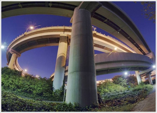 One solution - to build multi-level interchanges. Freeway can pass right through the building,