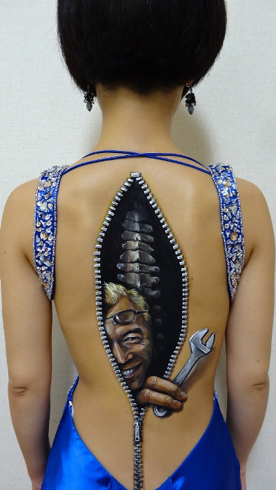 看完這些畫有沒有莫名的覺得身體很痛,雖然這些畫作的風格是如此怪誕詭異,但卻在國際上頗受好評,有人認為這是人體彩繪的突破之一,那些恰到好處的陰影讓畫作更顯逼真,讓人體畫布有更多的可能。不知道她有沒有興趣在萬聖節派對前兼差,應該很多人排隊等著讓她開膛破肚才對!