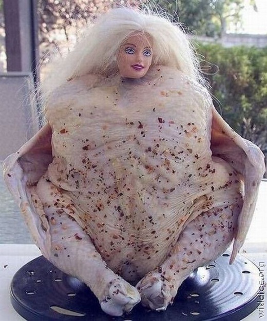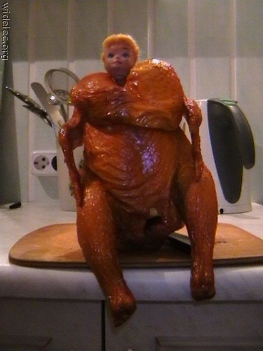 小編之前看過芭比娃娃結合蛋糕...但想到芭比也可以混搭烤雞的∼喔賣尬