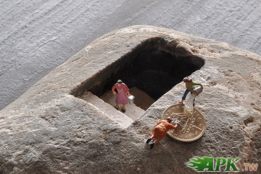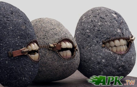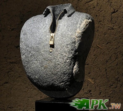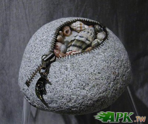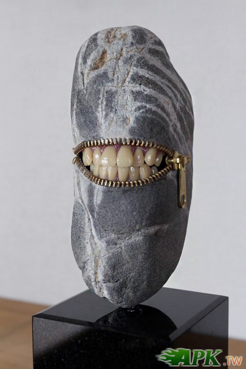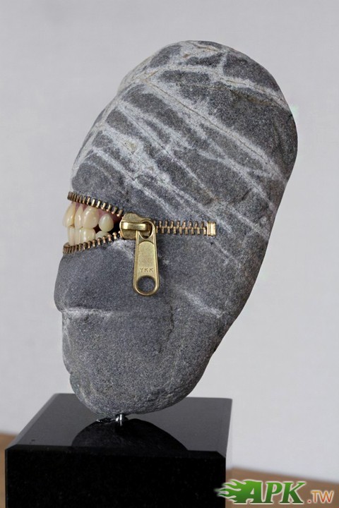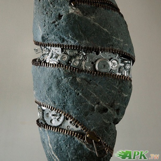 他只用了我們平時山上能拾到的大理石和花崗岩用反差的技術制作出來的作品