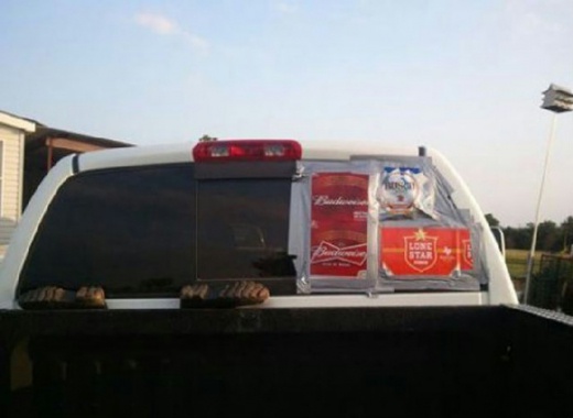 車玻璃壞了就貼厚紙板海報吧