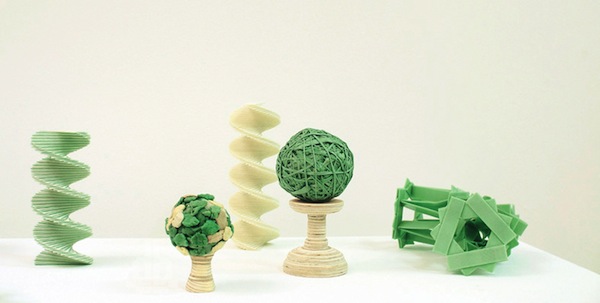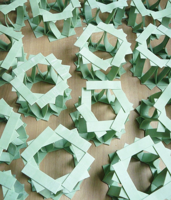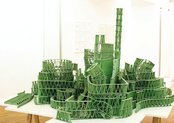 法國藝術家Jeremy Laffon以一條又一條的薄荷口香糖完成這一系列巨大的雕塑作品,精緻的幾何架構彷彿金屬製成的支架,有種雲霄飛車軌道的錯覺。而組裝的方式就像平時常見的撲克牌塔,但Laffon利用口香糖可彎曲的特性呈現出搖搖欲墜的不安感,為作品增添不同的特色。