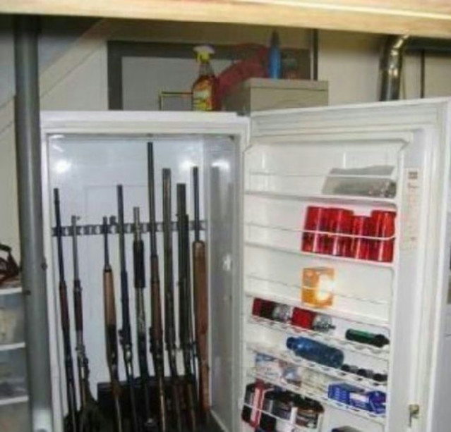 壞掉的冰箱改裝成收藏櫃,只是拿來放槍一下子還適應不過來XD