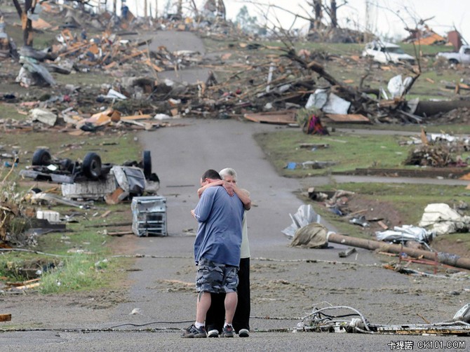 ▲龍捲風摧毀家園,母子相擁 美國2011年4月