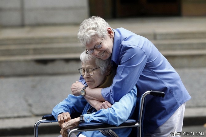 ▲菲利斯‧西格爾 76歲,和Kopelev 84歲。同性情侶,在曼克頓結婚。