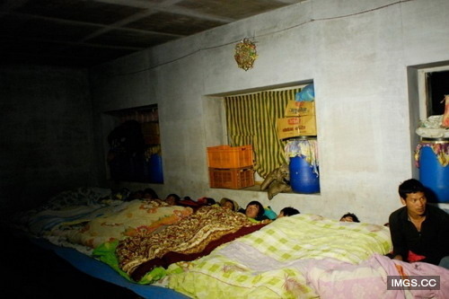 晚飯後,這些搬運工們睡在修道院庇護所裡,空間狹小到無法動彈。夜間庇護房屋裡只有塑料做的窗戶,他們有時不得不睡在地上。