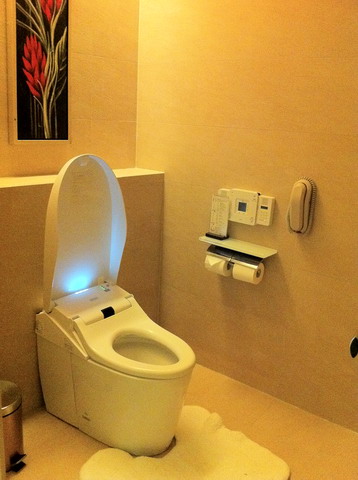 全自動化搭配音樂的馬桶..還有全金箔上身的~可惜這間沒有!