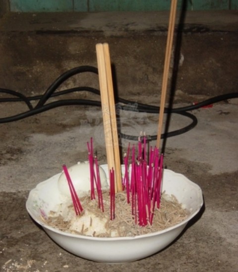 到了刑場,才發現其夫已遭處決。因為事出突然,妻子來不及準備香爐,便以飯碗為爐,以筷子為香,於腳尾祭拜,告慰亡夫之靈,後世也才有拜尾飯之俗。傳至現今,拜「腳尾飯」是讓亡者吃了之後,才有力氣赴陰府報到。