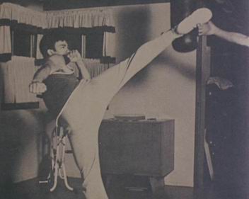 片中有一段是李小龍獨戰六名歹徒,展示了"李三腳"之勢不可擋的威力:三次轉身踢腳,每一次轉身所踢的角度都不同,一條腿能夠踢到一半然後決定該向高處或低處出擊,快如閃電,對方根本無法招架。
