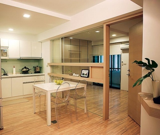 餐廳的設計簡單、通透,與隔壁的臥室和書房以玻璃隔間(有設計窗簾遮蔽),引入陽光。一張張透明的座椅彷彿不存在,卻又叫人不得不注意到它的存在,它是Philippe Starck設計的Victoria Ghost(NT$9,680)。