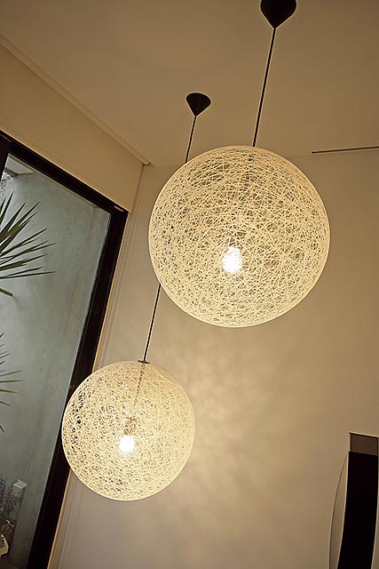 Light的吊燈(NT$152,280),以玻璃纖維交織而成,「設計靈感來自貓咪玩的毛線球。」