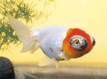 經過幾年選育,在彩色水泡中又培育出兩眼之間具有紅色斑塊者,十分媚人,若色斑方正,堪稱極品。