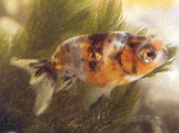 這是日本人最寵愛的金魚,中國各地名稱也不一致,有稱之為虎頭的,尤以獅子頭名稱最為恰當。該品種清代已經出名,在《欽定古今圖書集成》、《閩南物產志》等書中都有記載。公元1748年,日本的安達喜之稱之為「卵蟲」,並發表於《金育養玩草》上。