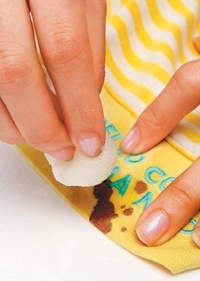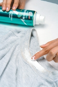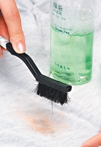 噴在髒汙處,用手指抹勻後,等待約五分鐘,丟到洗衣機清洗,就能輕鬆洗淨髒污。