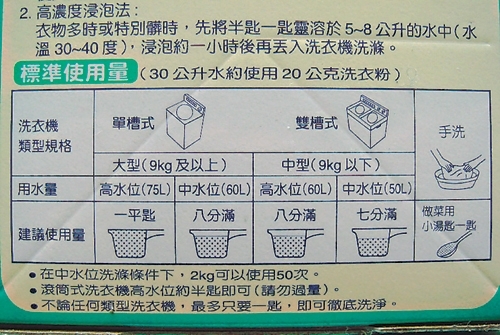 一般洗衣粉或洗衣精外包裝都有用量標示,洗之前參考一下喔。