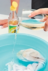 隔天再丟入洗衣機,就能洗得相當乾淨。醋有殺菌、除臭和漂白功效,使用過的醋水,還可清理地板,非常環保。