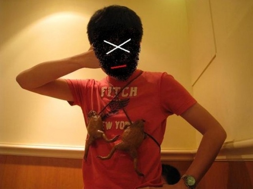 我這輩子收過很多奇趣的紀念品、生日禮物之類的,像是墨西哥小怪物或是群魔亂舞T之類的玩意兒,我以為我的搞怪極限已經夠破表了,沒想到不久前鐵公子去了一趟長灘島,回來後說有照了一張照片獨家獻給我(如下圖),我看完後整個崩潰大驚喜!!
