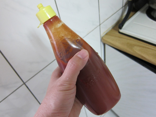 3.在生鏽的地方塗抹上厚厚一層番茄醬