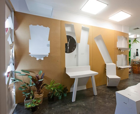 這是位於墨爾本的紙板商店裡的創意設計,不只發揮手創功力,