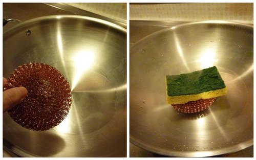 (我多墊一塊菜瓜布這樣刷才不會燙到手..... )